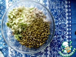 - Горошек зеленый (примерно целая баночка консервированного горошка) — 200 г