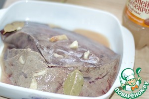 Печень маринуется в хлебном квасе и запекается в духовке. Получается очень нежной, вкусной, а с кружкой холодного кваса Очаковский- просто бомба! Очень рекомендую!
