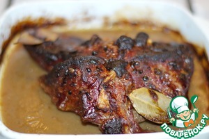 Запекать в разогретой духовке (180 -200 градусов), поливая маринадом через каждые 10 минут до готовности (у меня печень запекалась около часа).