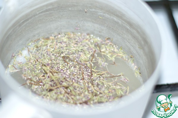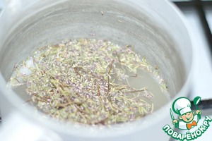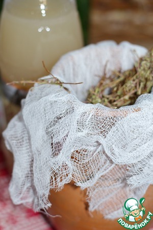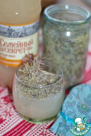 В стакан с квасом добавить сухие листья чабреца, добавить мед.