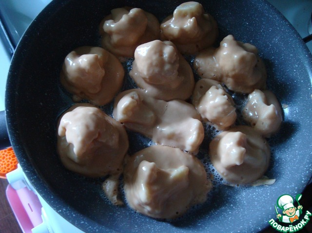 Нанизываем каждый кочанчик на вилку и обмакиваем в кляре.