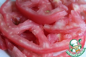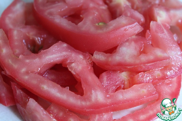 • У помидора убрать жидкость с семенами, порезать мякоть.