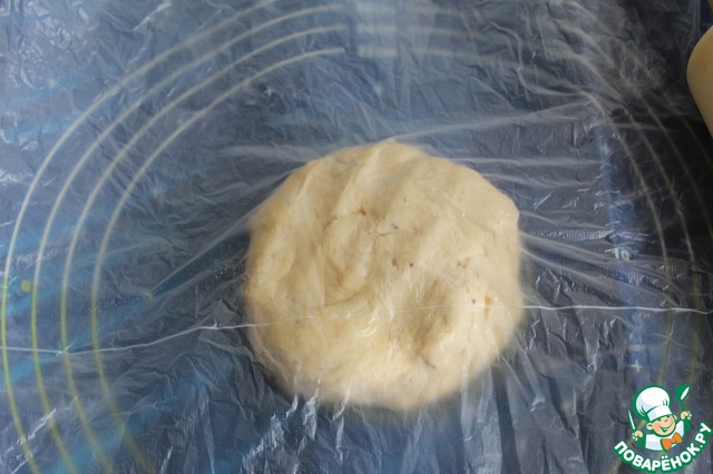 • Тесто завернуть в пленку и убрать в холодильник, пока делаем начинку.