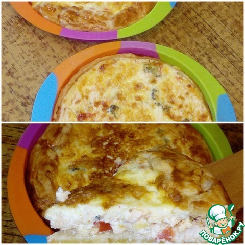 Как обычно, по выходным, проходит моя ревизия в холодильнике. Так получился этот пирог - вкусный и очень гармоничный! Тесто необычайно вкусное- сырно-слоеное, нежное и в тоже время хрустящее, и нежная сливочная заливка - может кому пригодится, как база, а начинку всегда можно изменить по своему вкусу. Пирог очень сытный, но не тяжелый, отлично взять с собой на пикник, очень вкусно в холодном виде, для меня кусок такого пирога полноценный ужин.
