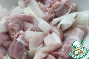 Печень и мясо обмыть, порезать на небольшие кусочки. если есть сомнения, что печень будет горчить - подержите ее в ледяной воде полчасика - но я не чувствую горечи в паштете и без этого.