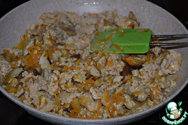 Добавить фарш, посолить, поперчить. Помешивая, тушить ещё 10 минут.
