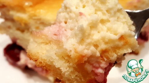 Собиралась испечь очередной творожник, и испекла... но назвать это воздушное чудо творожником как-то не получается, скорее это нежное как облачко суфле... Основа - савоярди, пропитанное йогуртом и начинка вишня для лёгкой кислинки во вкусе. Угощайтесь. P.S. У нас очень большая и очень подростковая семья, поэтому и объём пирога приличный. Так что смело можно печь половинную порцию для семьи поменьше...