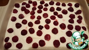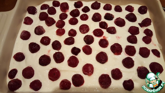 Выложить вишню. У меня вишня была замороженная, конечно, свежая будет ещё вкуснее, только не забудьте удалить косточки. Да, вишню я не размораживала.