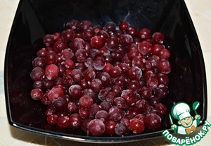 Замороженную клюкву достать из морозилки. Полностью размораживать не нужно, пусть слегка оттает, пока готовится тесто.