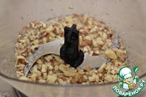 Орехи измельчить в блендере или порубить ножом в крупную крошку.
