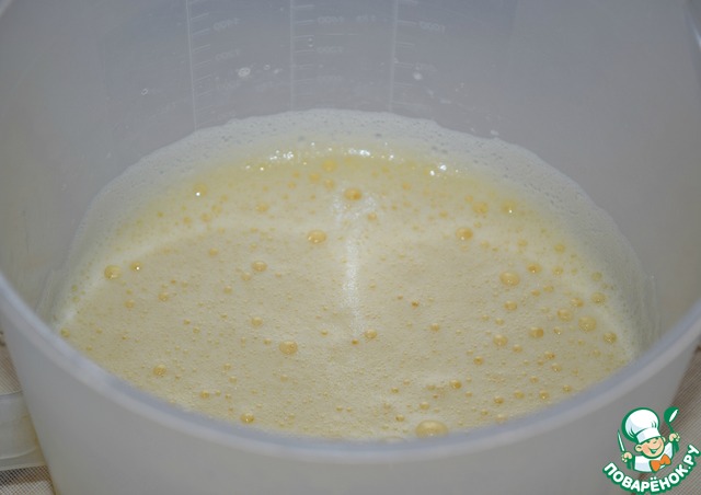 Яйца взбить в пену. Не переставая взбивать, добавить сахар и взбивать ещё минут 5.