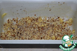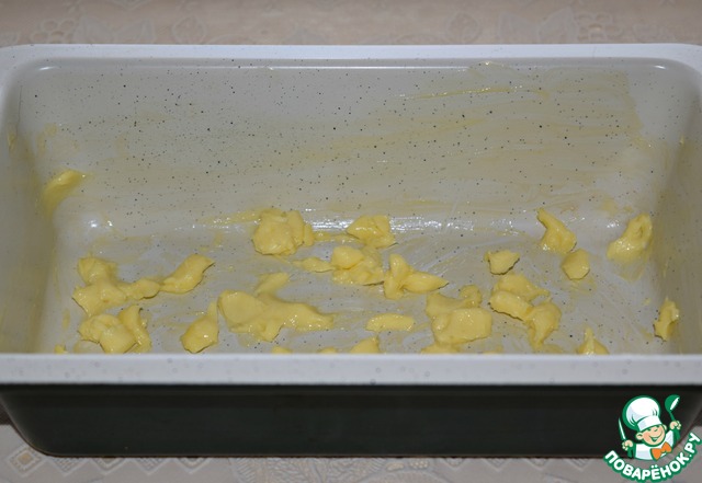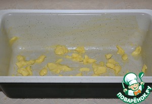 Сливочное масло порубить ножом и распределить по дну формы (размер формы 23х12).