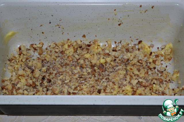 На масло выложить рубленые орехи.