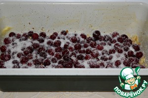На них выложить ягоды клюквы и посыпать сахаром.