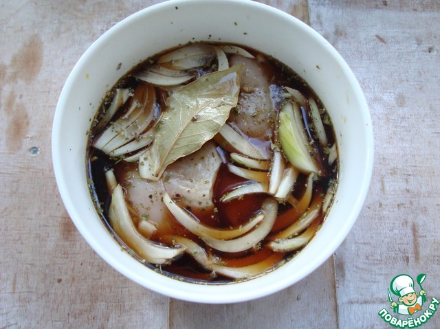 Я убрала в холодильник на ночь, хотя можно помариновать и с пол-часа.
