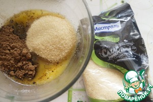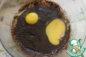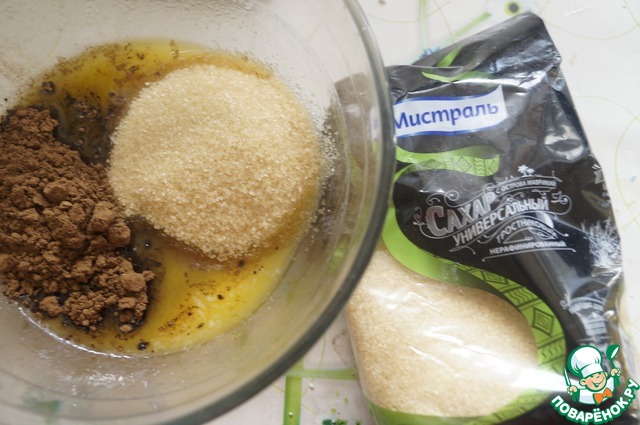 сливочное масло растопить, добавить сахар и какао, хорошо перемешать до однородной массы. -