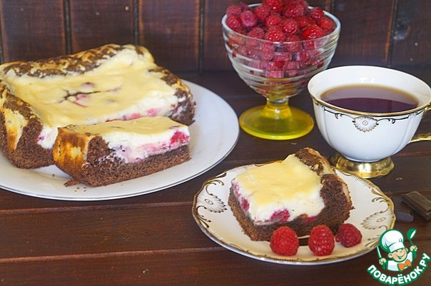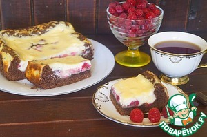 Рецепт «Шоколадный малиновый пирог в сливочной заливке»:
