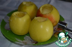 Вырезать сердцевину так, чтобы сохранилось дно у яблочка.