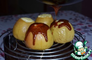 Каждое яблочко полить сверху горячим карамельным сахаром.