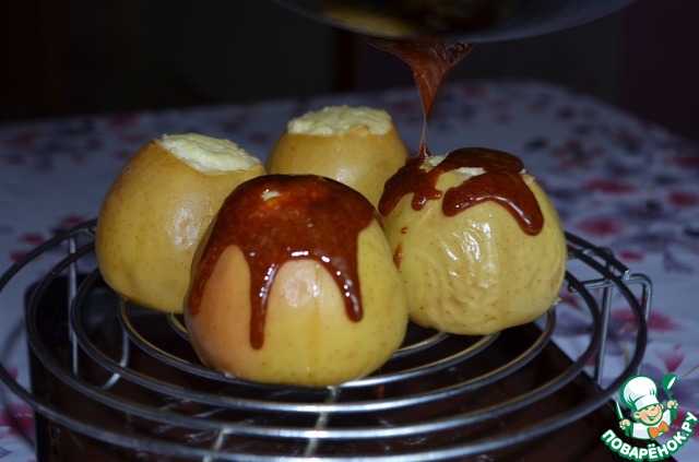 Очень нравятся печеные яблоки. Если сделать их с нежной творожной начинкой и полить карамелью, это будет прекрасный и не сложный десерт. Остается только попробовать!