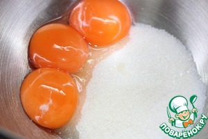 Желтки растереть с обычным и ванильным сахаром.