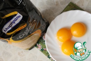 От яиц отделить желтки и взбить с тростниковым сахаром Демерара от Мистраль в кремообразную массу