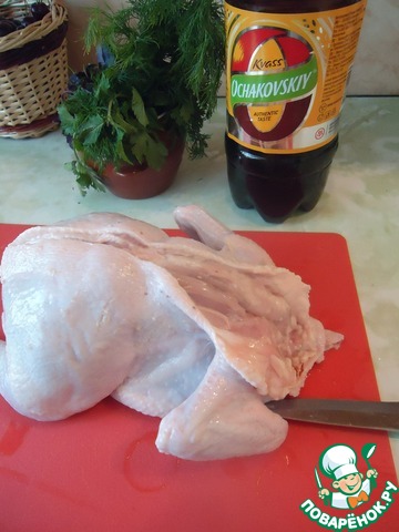 Намазать начинкой нашу курочку. -
