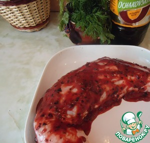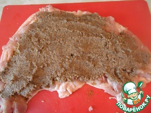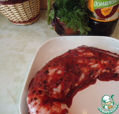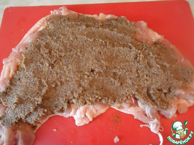 Смазать нашим маринадом рулет и оставить мариноваться минут 15-20.
