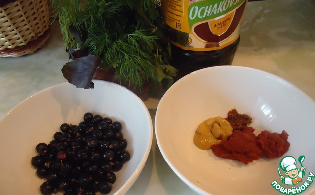 Ягоды, горчицу, томатную пасту, аджику, соевый соус и квас Очаковский.