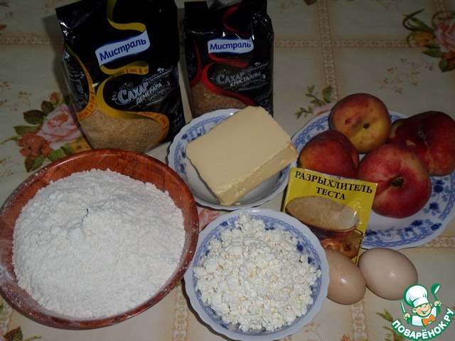 Ингредиенты для «Пирог с персиками "Двойной творожный"»: