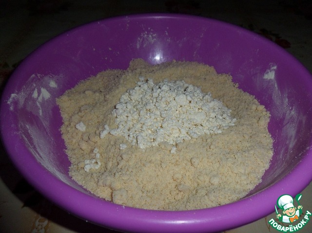 Перетираем руками или с помощью вилки до состояния крошки. -