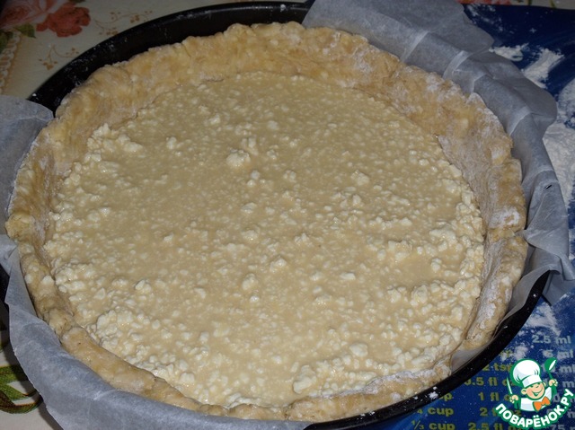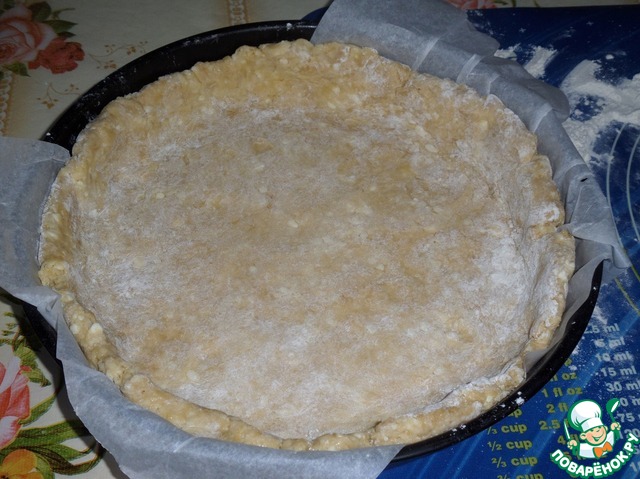 Выкладываем лепешку в форму ( моя форма диаметром 24 см), формируя бортики. -