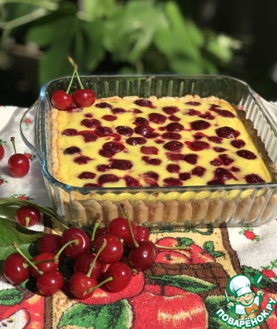 Рецепт «Вишневый пирог в творожно-сметанной заливке»: