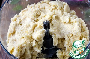 • В кухонном процессоре смешать все ингредиенты для теста, кроме воды, в самом конце добавить холодную воду и вымешивать пока тесто не соберется в шар.
