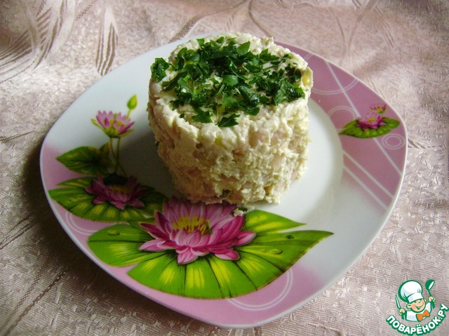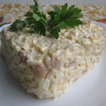 Заправить майонезом, дать настояться 5 минут и подавать к столу!