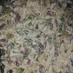 А! Чуть не забыла! Ведь этот салат можно использовать - если размять фасоль вилкой - в качестве а-ля "замазки" - намазал на хлеб и вуаля!!! - со сладким чаем, по-моему, милое дело!!!