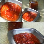 Слегка сладковатый, в меру острый, просто бесподобный джем, нет, все же соус, но по консистенции джем, но по вкусу соус. Короче, готовьте, это обалденно вкусно!!! Лично я могу сразу банку слопать с маааленьким кусочком мяса. Делаю несколько баночек вроде на зиму, не доживают до зимы. Может их кто ворует, эти баночки? Кстати, моему супругу соус не очень нравится, но он не понимает как это сладость к мясу, а вот зять оценил сразу, полностью его вкус!
