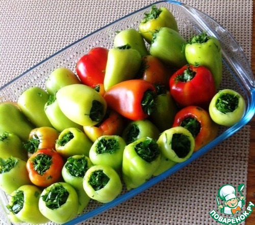 Начиняем наш перец зеленью.