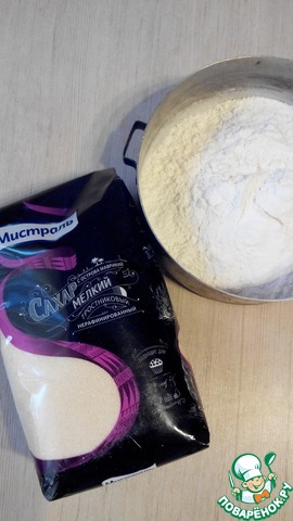 • Смешиваем все сухие ингредиенты: муку, разрыхлитель, соль и сахар. Сахар у меня мелкий ТМ Мистраль. Он идеален для выпечки!