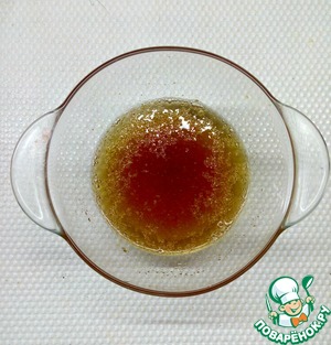 Когда желатин разбухнет, нагреть сок с сахаром, размешать, довести до кипения, снять с огня, добавить набухший желатин, растворить его в соке. Оставить остывать (я опускала кастрюльку в таз с водой, чтобы быстрее остыл).