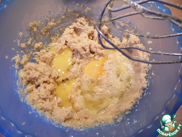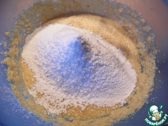 Добавить просеянную с разрыхлителем муку, замесить негустое тесто.