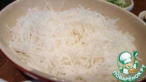 Дайкон почистить и натереть на тёрке для корейской моркови.