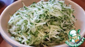 А ещё, мне очень хотелось заменить обычный редис, который, к слову, я не очень люблю мыть и чистить (а ещё он попадается иногда горький или мягкий), на дайкон, сочный, вкусный и легко поддающийся любой нарезке или тёрке.