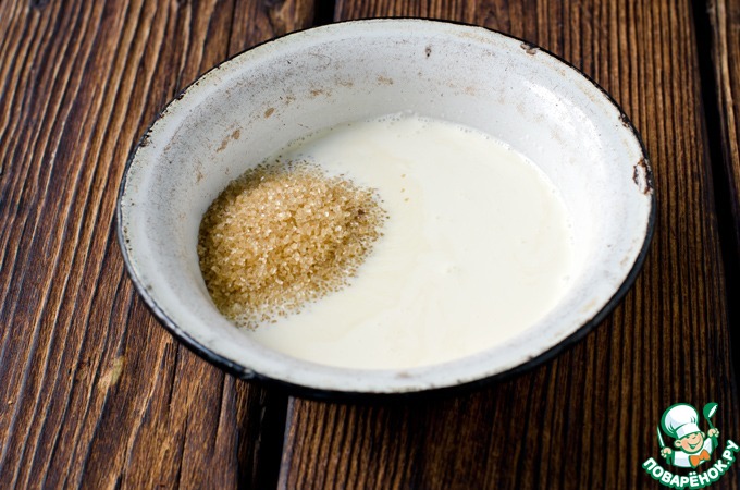 Смешать 100 мл сливок и тростниковый сахар Демерара от ТМ Мистраль.