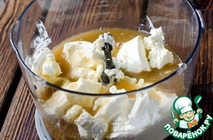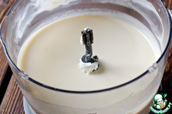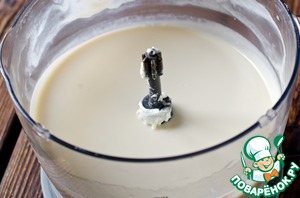 В блендер положить сыр Филадельфия и сливочно- желатиновую массу.