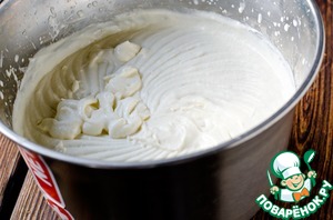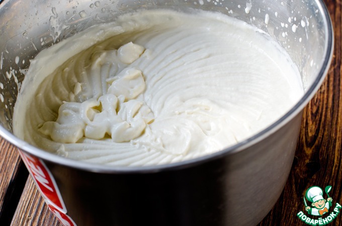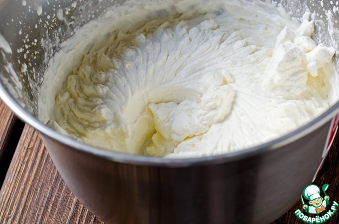 В чашу миксера влить оставшиеся 350 мл сливок и взбивать до пышности, смотрите не перебейте, а то получится масло.
