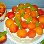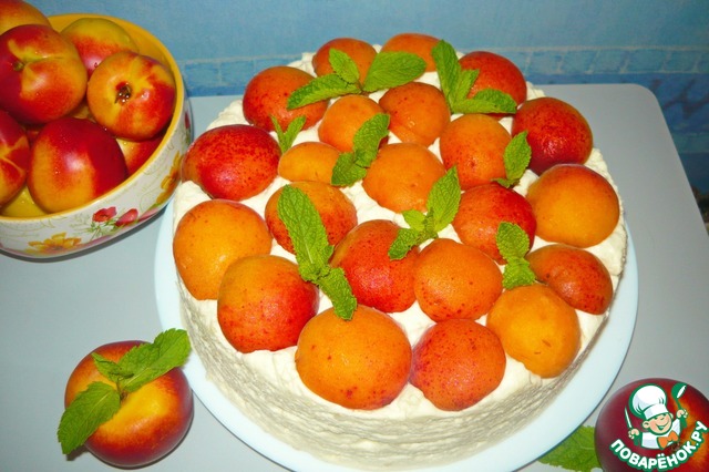 Этот торт я готовлю постоянно, особенно летом, потому что есть большое количество ягод и фруктов. Вариантов множество, малина, смородина, вишня, виноград и наконец абрикосы. Еще он хорош тем, что готовится очень быстро и не требует выпечки.