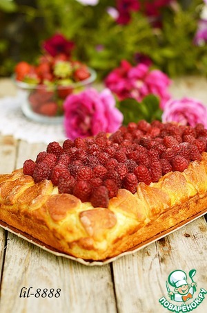 Рецепт «Дрожжевой пирог с творогом и малиной»: