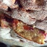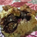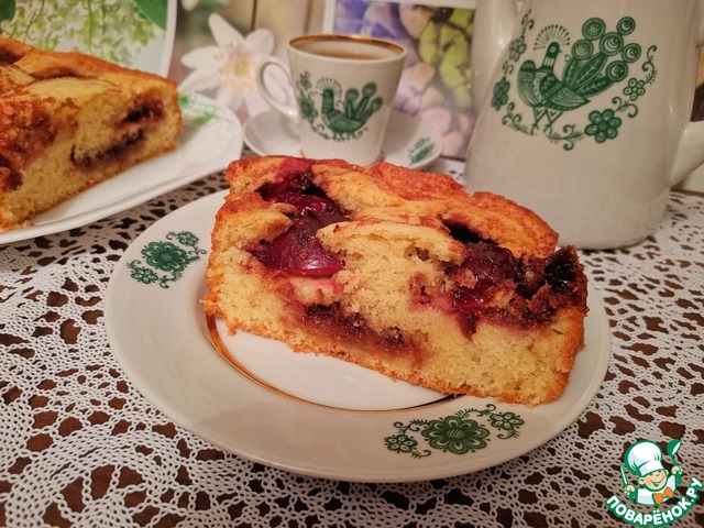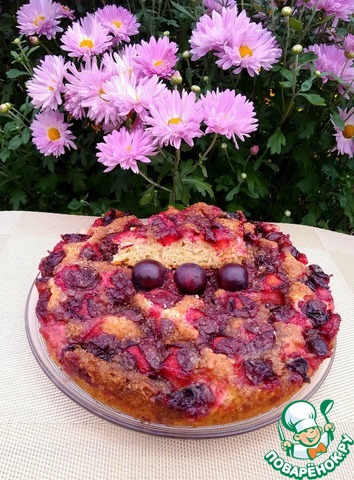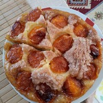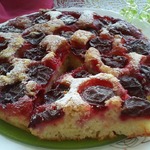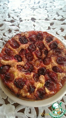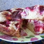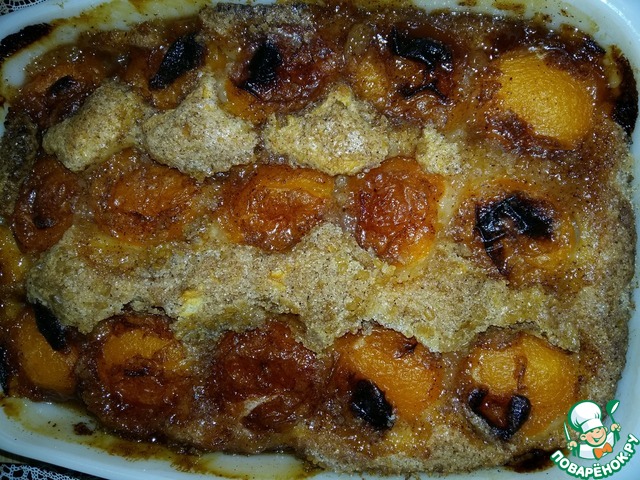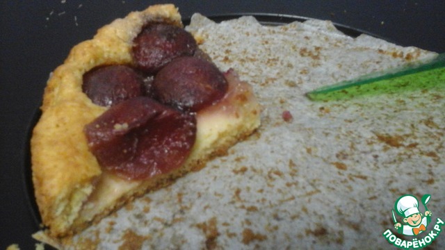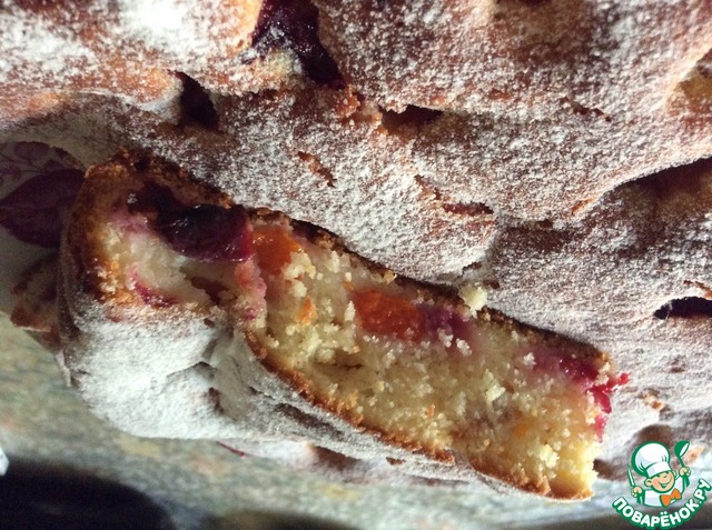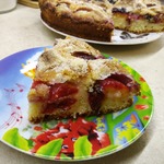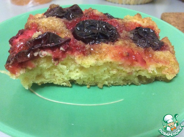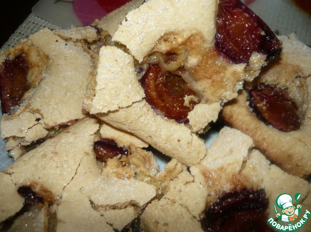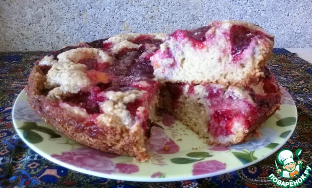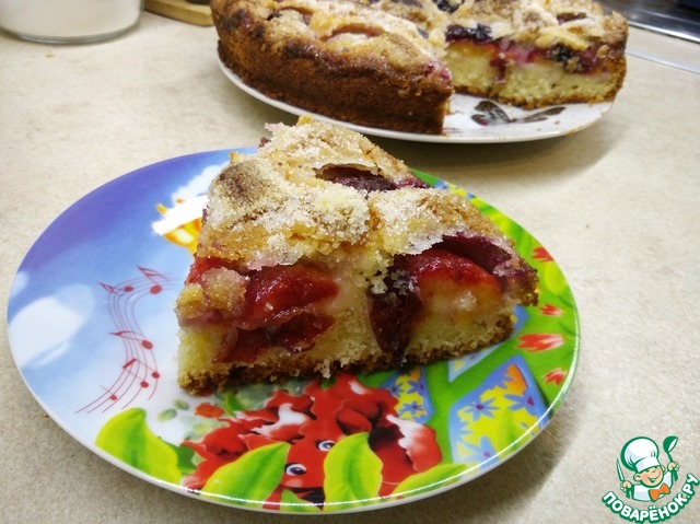 [+5]Тесто не очень сладкое, поэтому пирог получается гармоничным из-за фруктовой начинки и сладкой посыпки.