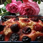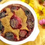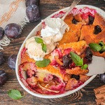 Посыпать сливы оставшимся сахаром, смешанным с корицей, полить растопленным сливочным маслом.